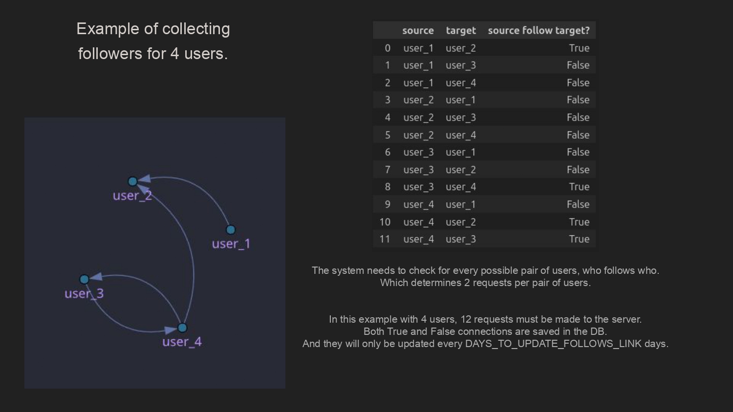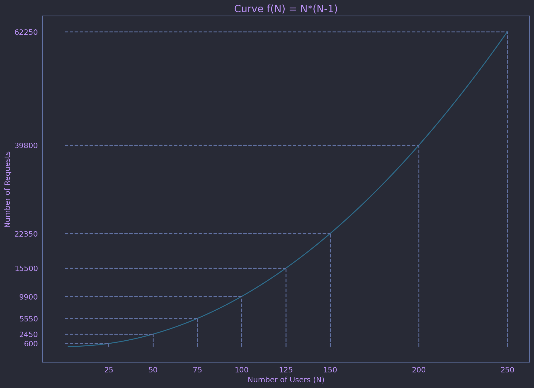 Figura 4: Número de requests a RapidAPI necesarias para recolectar datos de N cuentas. La limitación del sistema es que hacer más de 100000 solicitudes aumentaba el costo del servicio mucho (Poco más de 250 usuarios por mes aproximadamente).